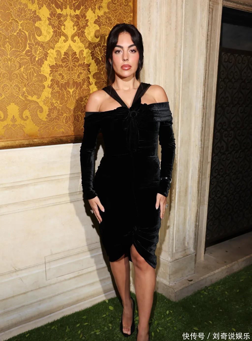 C罗未婚妻乔治娜又美出圈了!据英国《太阳报》报道,近日32岁的乔治娜·罗德里格斯现身意大利罗马,出席Interferenze时装秀,一身黑色丝绒裙造型直接惊艳全场,妥妥的全场焦点,气场直接拉满。说真的,现在的乔治娜,早已不是当年那个在古驰专柜打工的普通店员了,如今的她,早已跻身顶级时尚圈,成为全球各大顶级时装秀头排的常客,走到哪里都是自带光环的存在。这次罗马时装秀,乔治娜的穿搭真的太会选了!一袭黑色丝绒及膝长裙,丝绒面料自带高级光泽,摸起来质感绝了,没有多余的浮夸装饰,简约又大气。合身的剪裁把她的好身材勾勒得恰到好处,肩带轻轻绕在肩头,勾勒出优美的肩颈线条,温柔又有气场。